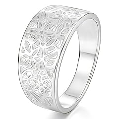 MunkiMix 925 Sterling Silber Band Ring Blume Muster Blatt Laub Filigran Hochzeit Damen