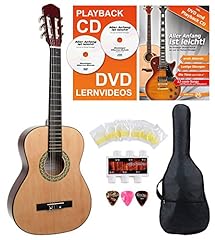 Classic Cantabile AS-851 3/4 Konzertgitarre Starter Set (Komplettes Anfänger Set mit Klassik Gitarre, Gigbag Tasche, Nylonsaiten, Lehrbuch/Schule inkl CD und DVD, 3x Plektren und Stimmpfeife)