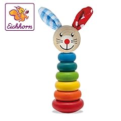Eichhorn 100017019 - Baby Steckfigur mit Hasenmotiv, 6 Ringe mit Steckkopf, 18cm, FSC 100% Zertifiziertes Buchenholz, Made in Germany
