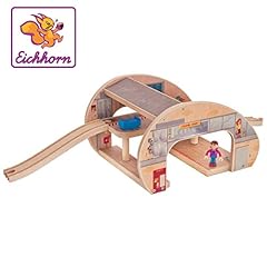 Eichhorn 100001523 - Großer Bahnhof, Gebäude mit 2 Spielebenen, 2x Bergschiene, Figur und Sitzbank, 28x22,5x16cm, Buchenholz