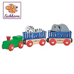 Eichhorn 100001351 - Bahn Tierzug, 5-teilig - Lok mit 2 Wagons und 2 Tieren - Buchenholz - verbaubar mit nahezu allen Schienenbahnsystemen