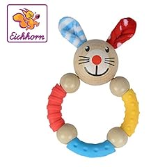 Eichhorn - Baby Greifring mit Hasenmotiv - aus FSC 100 Prozent zertifiziertem Buchenholz, farbiger Silikonring und Holzkugeln, 9x13,5cm, ab 3 Monaten