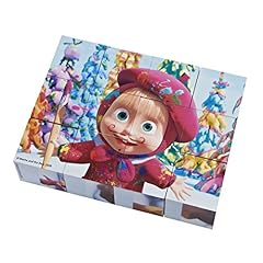 Eichhorn 109304088 - Mascha und der Bär Bilderwürfel, 6 Motive mit 12 Bausteinen, 13-tlg., inkl. 6 Vorlagen, 16x12cm, Kiefernholz