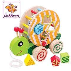 Eichhorn 100002231 - Nachzieh-Stecktier, mit 4 versch. Steckbausteinen, 15x24x19,5cm, Birkenholzspielzeug mit Bewegung