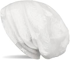 styleBREAKER Beanie Mütze mit gewebtem Feder Muster, Slouch Longbeanie, Unisex 04024130, Farbe:Weiß