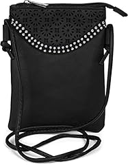 styleBREAKER Minibag Umhängetasche mit Blumen Cutout Muster und Nieten, Schultertasche, Tasche, Damen 02012127, Farbe:Schwarz