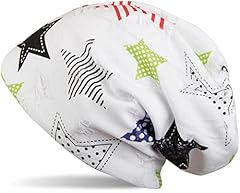 styleBREAKER Crazy Destroyed Beanie Mütze mit bunten Sternen in Punkte und Streifen Optik, Damen 04024059