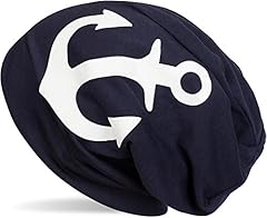 styleBREAKER Beanie Mütze mit Anker Print, maritimer Look, Sommermütze, Slouch Longbeanie, Unisex 04024112
