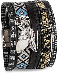 styleBREAKER Armband mit Feder und Muschel Anhänger, Strasssteine, Ethno Stoff, Print, Magnetverschluss, Damen 05040044
