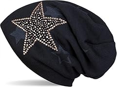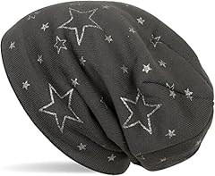 styleBREAKER warme Feinstrick Beanie Mütze mit glitzerndem Metallic Sterne Print, Fleece Innenfutter, Slouch Longbeanie, Damen 04024125