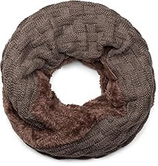 styleBREAKER warmer Feinstrick Loop Schal mit Flecht Muster und sehr weichem Fleece Innenfutter, Schlauchschal, Unisex 01018150, Farbe:Taupe/Braun
