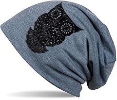 styleBREAKER Klassische Beanie Mütze mit Eulen Flock-Print, Damen 04024040, Farbe:Jeansblau