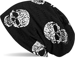 styleBREAKER Beanie Mütze mit Totenkopf Print im Destroyed Vintage Look, Slouch Longbeanie, Unisex 04024093
