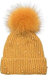 styleBREAKER Damen Strick Bommelmütze mit Perlen und Fleece Futter, Winter Fellbommel Mütze 04024155