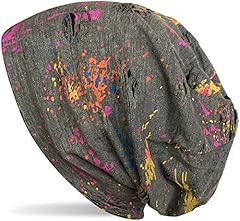 styleBREAKER Beanie Mütze mit Splat Style Farbklecks Muster im Used Look Vintage Design, Slouch Longbeanie, Unisex 04024118
