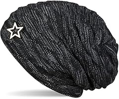 styleBREAKER warme Feinstrick Beanie Mütze mit Wellen Muster und Schmuck Stern, sehr weiches Fleece Innenfutter, Unisex 04024099, Farbe:Schwarz-Grau