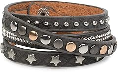 styleBREAKER Wickelarmband mit Strass, verschiedenen Nieten und Sterne, Armband, Damen 05040029