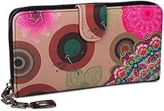 styleBREAKER Geldbörse mit Ethno Blumen und Blüten Muster, Vintage Design, Reißverschluss, Portemonnaie, Damen 02040040, Farbe:Beige-Braun-Dunkelbraun-Pink