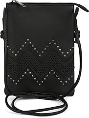 styleBREAKER Mini Bag Umhängetasche mit Zick-Zack Cutout und Nieten, Schultertasche, Handtasche, Tasche, Damen 02012211, Farbe:Schwarz