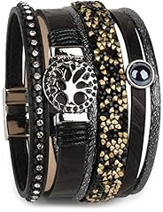 styleBREAKER Armband mit Lebensbaum Amulett, Perle, Strasssteine, Glaskristalle, Magnetverschluss, Damen 05040042