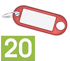 Wedo Schlüsselanhänger aus Kunststoff mit auswechselbaren Etiketten (20 Stück mit Ring/Rot)