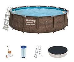 Bestway Power Steel Frame Pool Deluxe Komplettset rund, mit Skimatic Filterpumpe, Leiter, Boden- & Abdeckplane, 427x107 cm, braun