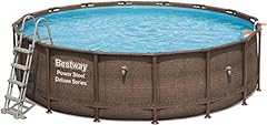 Bestway Power Steel Deluxe, Frame Pool rund mit stabilem Stahlrahmen im praktischen Komplett-Set, 488x122 cm