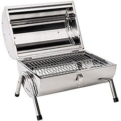 TecTake Edelstahl BBQ Grill mit großer Doppelgrillfläche Holzkohlegrill Grilltonne Silber