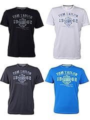 TOM TAILOR Herren Rundhals T-Shirt Logo Tee Basic Verschiedene Farben und Farbvarianten 4er Pack, Größe:XXL, Farbe:1x White 1x Tarmac Grey 1x Navy 1x Danish Blue