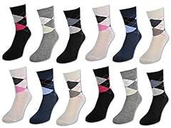 6 oder 12 Paar Damensocken ohne Gummi Baumwolle Karo Kariert Damen Socken - E-800 (39-42, 12 Paar | Farbmix)