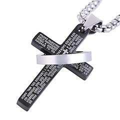 DonDon schwarzer Edelstahl Herrenring mit Kreuz und spanischem Vaterunser in schwarzem Samtbeutel