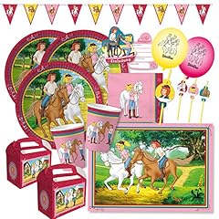 69-teiliges Party-Set - Bibi und Tina - Teller Becher Servietten Platzsets Wimpelkette Einladungen Trinkhalme Luftballons Partyboxen für 6 - 8 Kinder