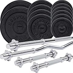 ScSPORTS® 48kg Guss Hantelset mit 1x Langhantel, 1x SZ Curlhantel und 2x Kurzhantel, Kombiset inkl. 12 Hantelscheiben