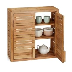 Relaxdays Wandschrank aus Bambus, 2 Türen, höhenverstellbare Einlegeböden, Quadrat Hängeschrank, HBT 56,5x56x21cm, Natur