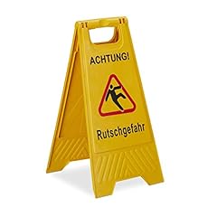Relaxdays Achtung Rutschgefahr Aufsteller, klappbar, Warnschild vor Glätte, beidseitig beschriftet, Hinweisschild, gelb, 1 Stück