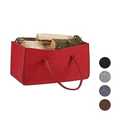 Relaxdays Kaminholztasche aus Filz, tragbarer Feuerholzkorb, faltbarer Zeitungshalter HxBxT: 25 x 25 x 50 cm, rot