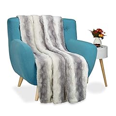 Relaxdays Kuscheldecke Felloptik, Decke Fellimitat, Tagesdecke XXL, Wohndecke flauschig, BxT ca. 150 x 200 cm, weiß-grau
