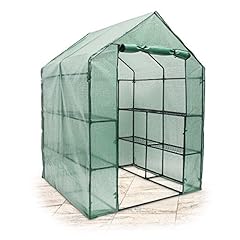 Relaxdays Foliengewächshaus begehbar 190x140x140 cm (HxBxT), PE Gitterplane Treibhaus mit 8 Ablagen f. Anzucht, grün