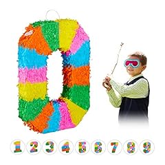 Relaxdays 10025189_912 Pinata Geburtstag, Zahl 0, zum Aufhängen, Kinder & Erwachsene, Papier, zum selbst Befüllen, Piñata, bunt