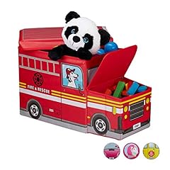 Relaxdays Sitzbox Kinder, Staubox mit Deckel, Spielzeug, faltbar, Feuerwehrauto, Stauraum, Jungen & Mädchen, 50 l, rot
