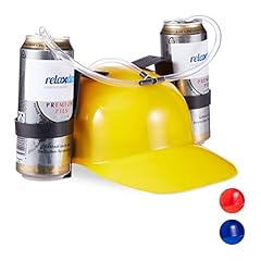 Relaxdays Party Trinkhelm, Helm mit Schlauch, für 2 Dosen Bier, Spaßartikel Fasching u. Fußball, lustiger Bierhelm, gelb