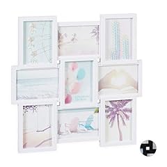 Relaxdays Bilderrahmen Collage, für 9 Bilder, Hoch- oder Querformat, Wand, Kunststoffrahmen, HxB: 54 x 54 cm, weiß