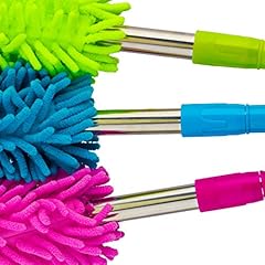 Relaxdays Staubwedel Teleskop, 3er Set, ausziehbar, Mikrofaser, für Haushalt & Auto, 60-95 cm lang, blau/grün/pink
