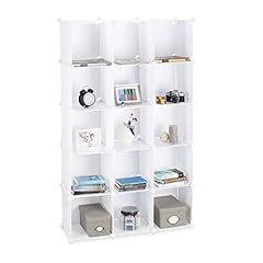 Relaxdays Steckregal aus Kunststoff, erweiterbares Regalsystem, 15 belastbare Fächer, individuelles Standregal, weiß