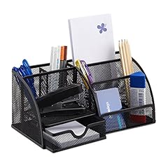 Relaxdays Schreibtischorganizer 6 Ablagen, kompakter Büroorganizer Metall, Schublade, Zettehalter, Stifteköcher, schwarz