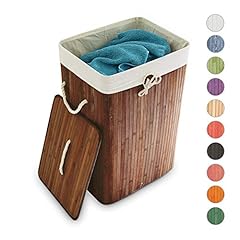 Relaxdays Wäschekorb Bambus, mit Deckel, rechteckig, XL, 83 L, faltbarer Wäschesammler, HBT 65,5 x 43,5 x 33,5 cm, braun