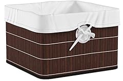 Relaxdays Aufbewahrungskorb Bambus H x B x T: ca. 20 x 31 x 31 cm Regalkorb für Regal und Schrank mit abnehmbarem Stoffbezug als dekorative Aufbewahrungsbox mit Griff und Stauraum zum Falten, braun