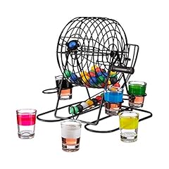 Relaxdays Trinkspiel Bingo, Lostrommel mit Kurbel & Halterung, 6 Shotgläser, 48 Kugeln, lustiges Partyspiel, JGA, bunt