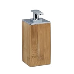 Relaxdays Seifenspender Bambus, nachfüllbar, eckig, HxBxT: 17 x 7 x 7 cm, Lotionspender, 225 ml, Holz, natur