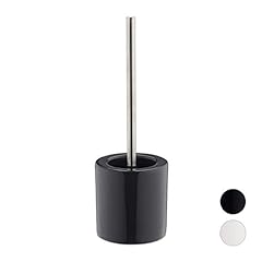 Relaxdays, grau WC Garnitur Keramik, runder Klobürsten-Halter, wechselbarer Bürstenkopf, Bad-Set, HxD 38,5 x 12,5 cm